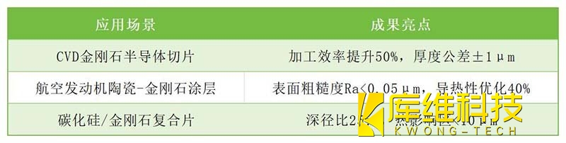 ??晶圓切割??:針對CVD金剛石半導體襯底,水導激光實現無崩邊切割,良品率提升至98%。
